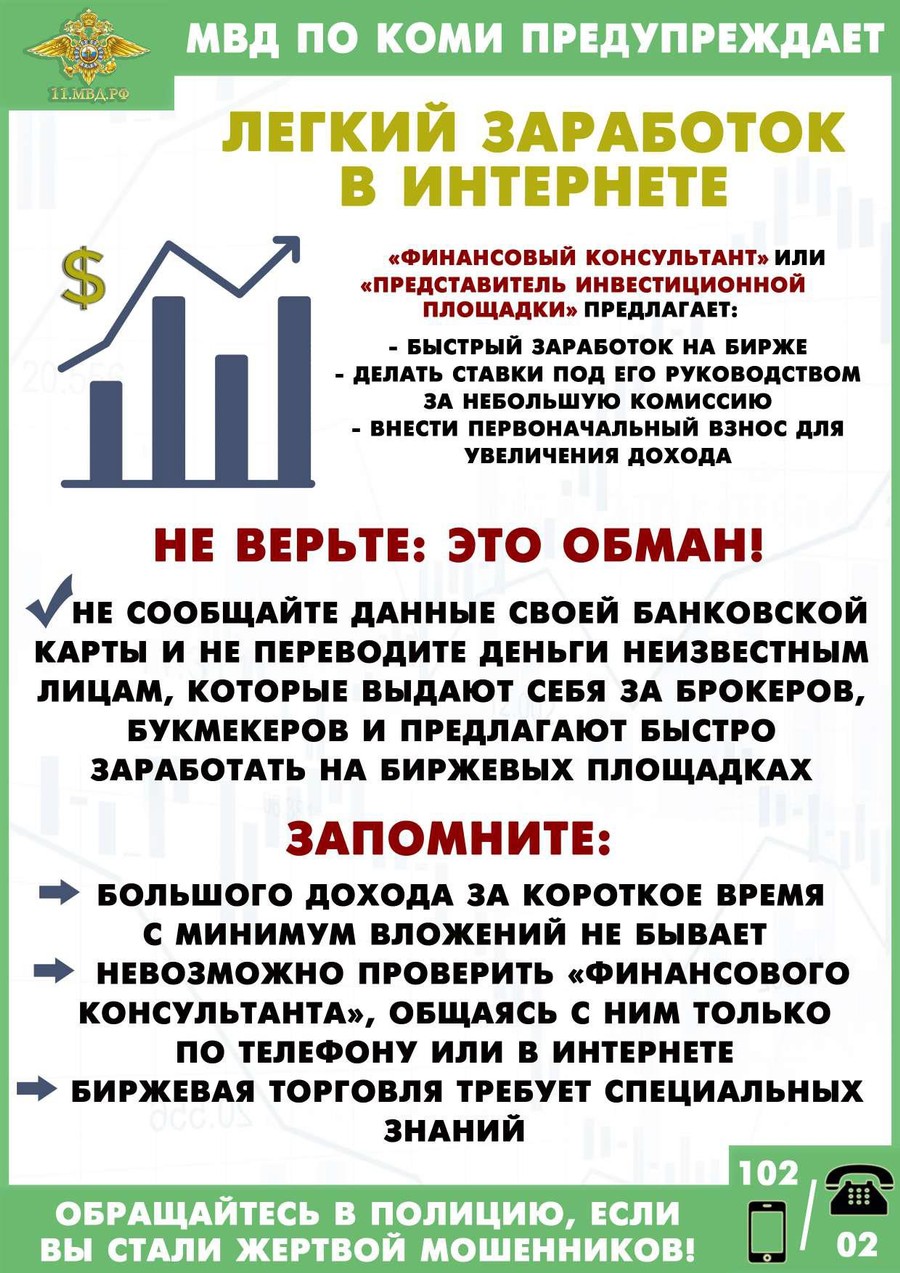 Так, в «легкие» деньги лжеброкеры заставили поверить 65-летнюю жительницу Удорского района и 71-летнего жителя Заполярья. Заявления потерпевших оказались идентичны. Под видом брокеров с ними связались кибераферисты, которые убедили жителей региона выгодно вложить деньги. Всё, что от них требовалось – перечислять суммы на указанный «куратором» счет. Доверившись незнакомцам, пенсионеры оформили кредиты и перевели в общей сумме около 650 тысяч рублей. Получить прибыль им так и не удалось, а злоумышленники перестали выходить на связь. Заподозрив, что столкнулись с мошенниками, они обратились в полицию.