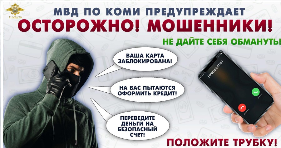МВД по Республике Коми вновь призывает жителей региона не выполнять никаких действий по требованиям телефонных собеседников, кем бы они не представлялись. Если вам сообщают о незаконных действиях с вашими банковскими картами, незамедлительно прекращайте разговор и звоните на горячую линию банка.